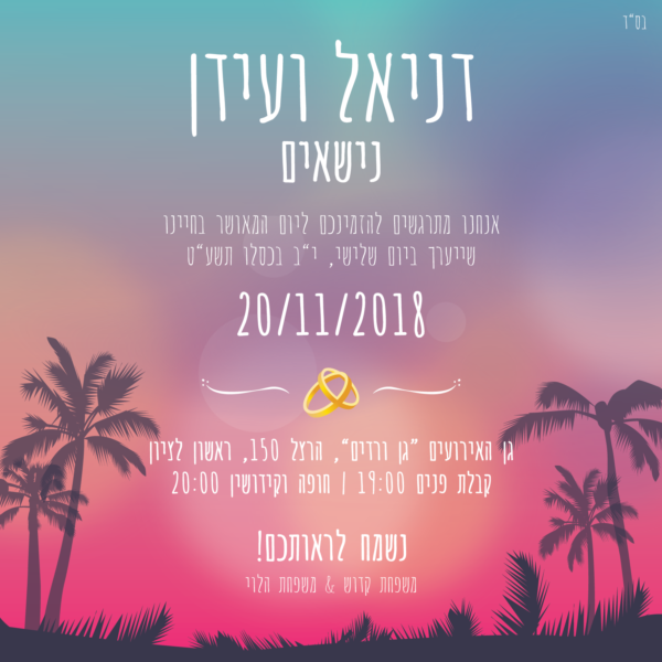 אהבה בשקיעה - הזמנה לחתונה - נופך משלכם