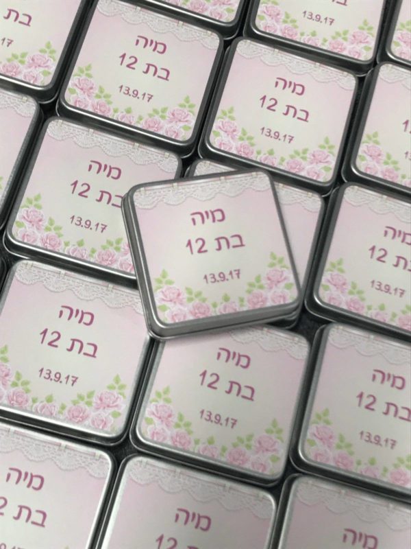 אריזת מתכת אישית במיתוג אישי – מזכרת לאורחים בבת מצווה