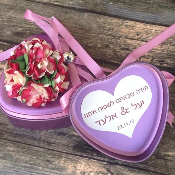 מזכרת לב מתכת יוקרתי בסגול – מזכרת לאורחים באירוע – מזכרת לאורחים בחתונה | בשבת חתן | בת מצווה | בריתה | מוצר פרימיום