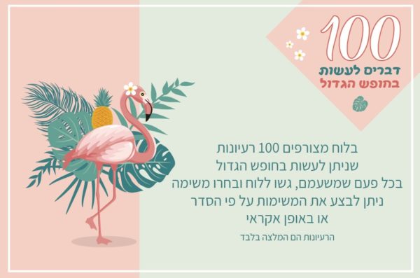 מגנט המכיל 100 רעיונות שאותם ניתן לעשות בבית או בחוץ. באופן עצמאי או שיתופי.